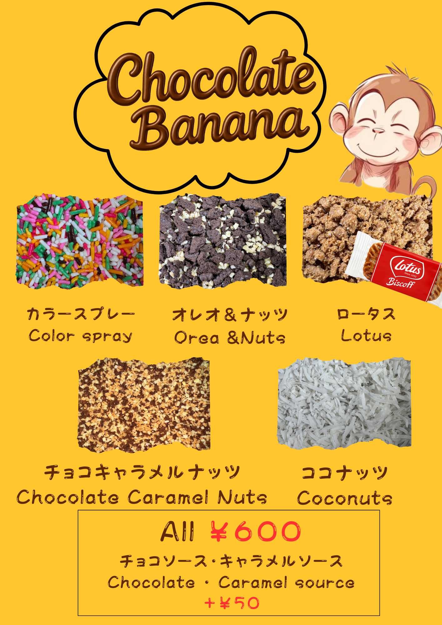 期間限定の本格チョコバナナをトッピング付きで楽しむも良し。