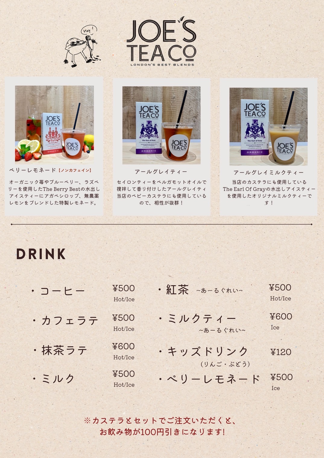 店内には、ゆったりとした雰囲気が漂い、訪れる人々をほっとさせる空間が広がっています。仕事帰りやショッピングの合間に、ぜひ立ち寄ってみてください。それぞれ異なる風味のドリンクは、ベビーカステラの甘さと絶妙にマッチし、心も癒されること間違いなしです。特に、香り高いコーヒーや紅茶は、カステラの味わいをより引き立てます。カフェラテや抹茶ラテは、クリーミーなミルクと豊かな味わいが特徴で、誰もが虜になるおいしさ。さらに、爽やかな酸味のベリーレモネードはリフレッシュに最適です。